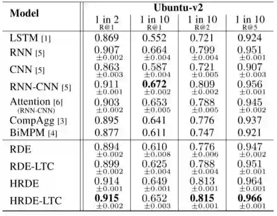 • 引入分层递归对偶编码器(HRDE)模型来计算问答对之间的匹配度来确定排名。通过使用分层体系结构将文本从单词级别编码为块级别,HRDE可以防止在理解更长的文本时性能下降,同时支持其他最先进的神经网络模型。
