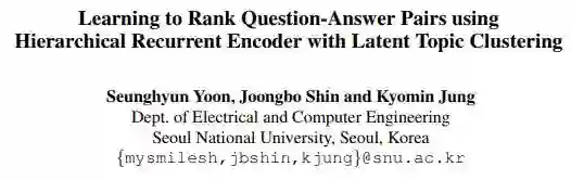 Learning to Rank Question-Answer Pairs using Hierarchical Recurrent Encoder with Latent Topic Clustering