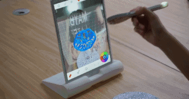 装好 APP,摆好底盘,就能用画笔直接在底盘上方的空间绘画了。