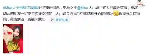 2016年年初,虎牙从龙珠直播挖走知名主播Miss(韩懿莹),签约费用据传达到惊人的3000万元。