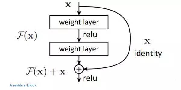 非常深层的网络有个问题,就是会从某些点开始表现就完全崩了。这是因为增加更多的层会让网络的精度降低。解决的办法是使用残差层,保证部分输入可以穿过所有层。残差网络如下图所示。