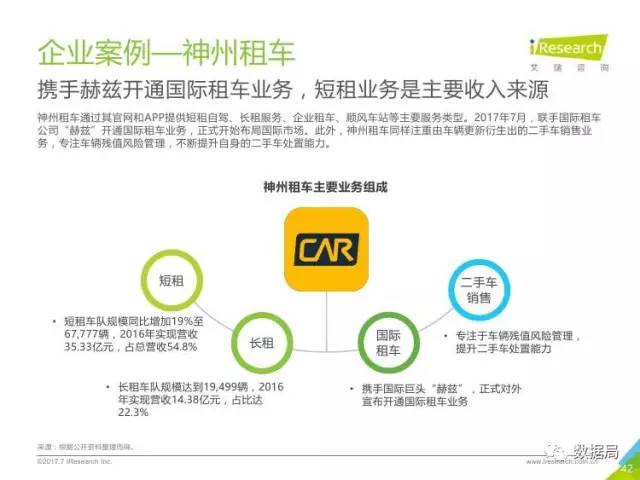 《2017年中国租车行业研究报告》本次报告主要聚焦中国租车行业发展环境、现状以及典型企业进行梳理和分析,希望通过观点的分享和碰撞,为行业发展提供有价值的参考。