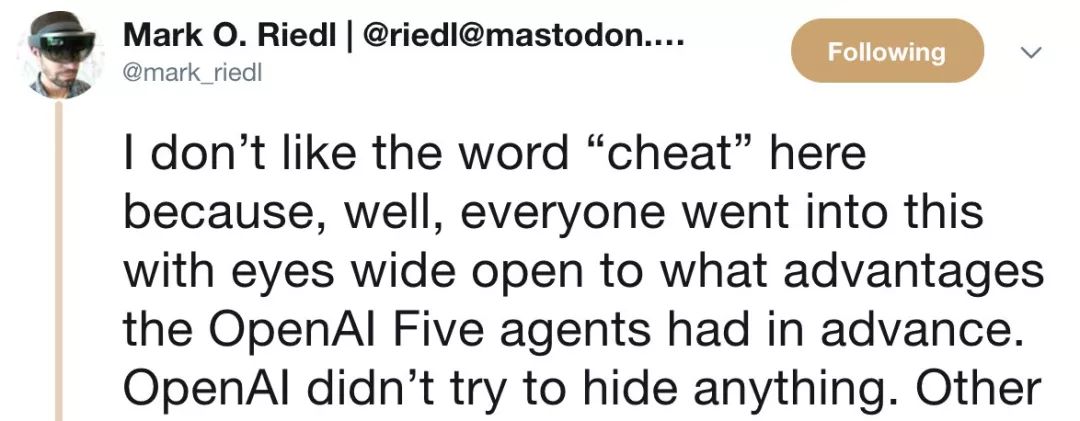 比如,提出“AI该靠视觉来跟人类同场竞技”的Mark Riedl教授本人,就很排斥这个说法。