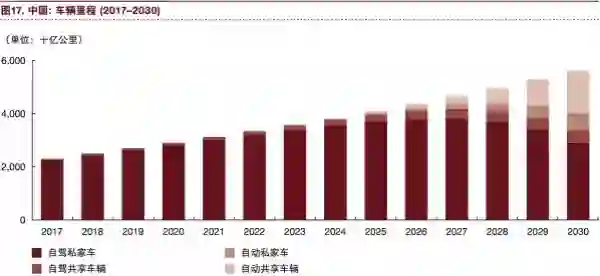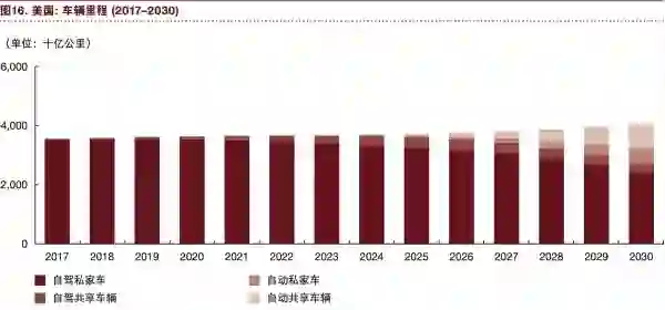 到2030年,自主驾驶私家车的保有量可能会下降1.1亿至1.7亿辆。到2030年,2700 万辆自主驾驶汽车的里程(占整体保有量的 13 %)可能占全部个人里程的40 %以上。