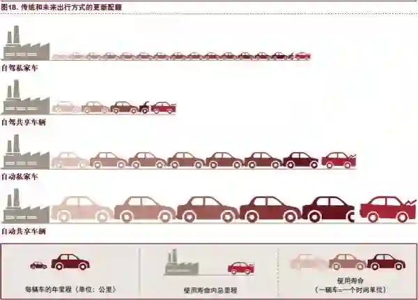 年里程的增长和车辆总里程的减少,意味着自动驾驶汽车的置换率将远高于私家车。