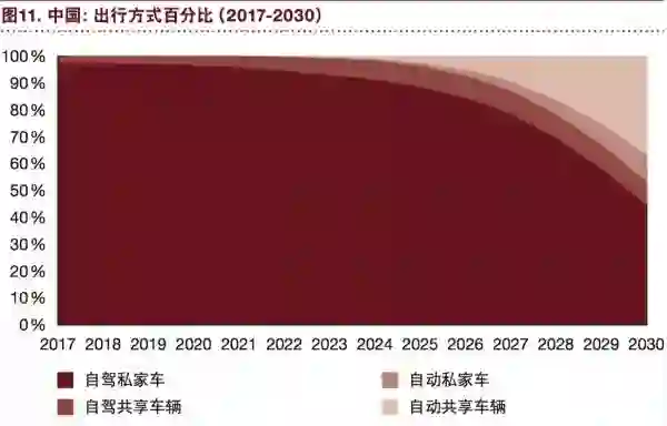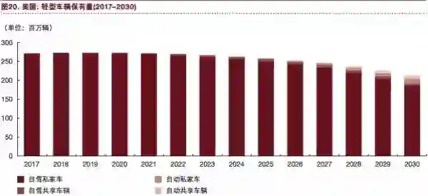 各种出行方式可能导致保有量容量从2017年的2.7亿多辆减少到2030年的2.12亿