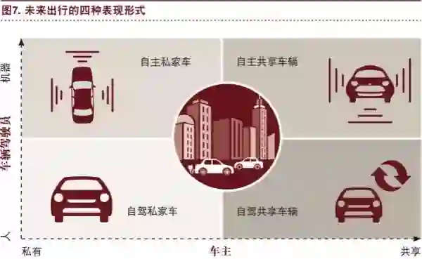 自动和共享:如将共享和自动化这两个趋势结合起来,你会得到四种维度的出行方式: