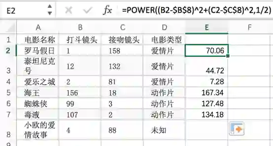 我们只需要计算欧氏距离(这个是真的叫欧式距离)
