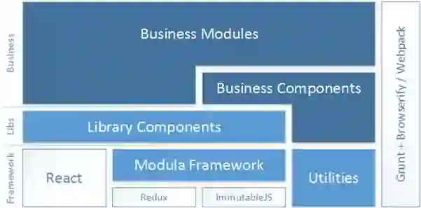 其中上游的 React、Redux、ImmutableJS 等框架为 SparkUI 的直接依赖,下游的 Business Components 业务组件、Business Modules 业务模块则为基于 SparkUI 框架开发业务代码的产出;衔接上下游的,则是 SparkUI 的核心组成部分。