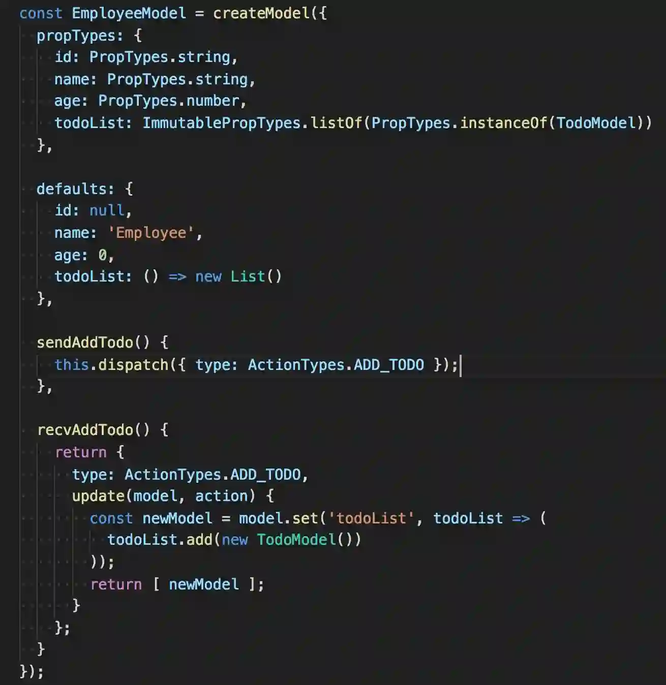 这只应用状态管理的新轮子我们起名为 Modula,并入 spark-modula 包。经过快速迭代,Modula 框架已正式替代早期的 Flux,应用于业务模块开发。Modula 包括 Model 模型、Constants 常量、Container 容器、Test Utility 测试工具四个组成部分,其中 Model 包含 Props/Hierarchy、Context、Sender/Receiver、Delegates、Bubble Event、Lifecycle Methods、Services、Local Props 等概念/API。以下是一个典型的 Model 例子: