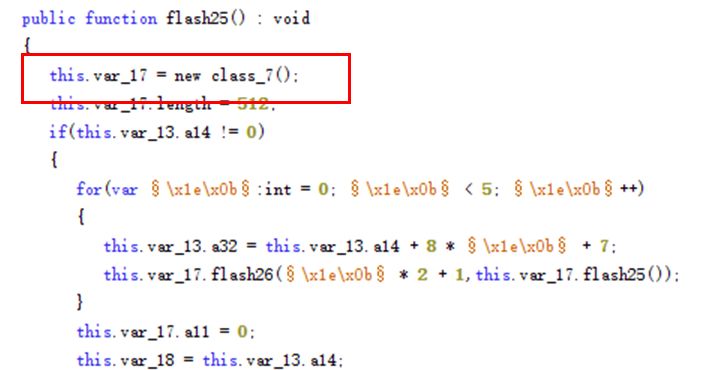 在flash_25方法中又会new 一个class_7的 ByteArray对象赋值给var_17。