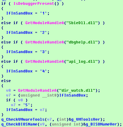 尝试加载下列DLL,尝试获取VMwareTools版本号和BIOS版本信息,进而判断是不是处于沙箱环境或者调试中