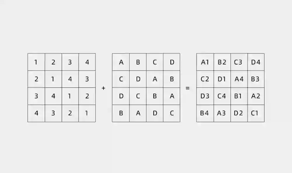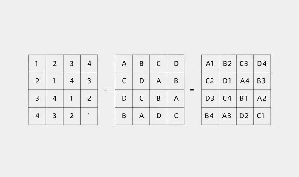 数独是一种「拉丁方阵」,即方阵是一种由符号(数字和字母)构成的方阵,其中每个符号在每一行和每一列中只出现一次。如果将两个有着相同的大小但不同的符号的拉丁方阵组合在一起,就会得到一个希腊拉丁方阵,也称为欧拉方阵,主要特点就是包含成对的符号。
