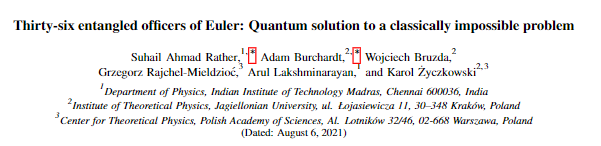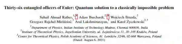 最近,《物理评论快报》上的一篇论文,来自印度理工学院(马德拉斯理工学院校区)、雅盖隆大学等机构的量子物理学家证明,采用量子力学的思路,就能够以符合欧拉标准的方式把这36 名「量子版的军官」安排到格子里。