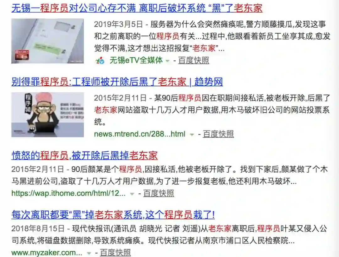 除了技术上的防范外,也需要加强人文关怀和法律知识学习,如今在网上搜索相关关键词,有不少程序员违法案例: