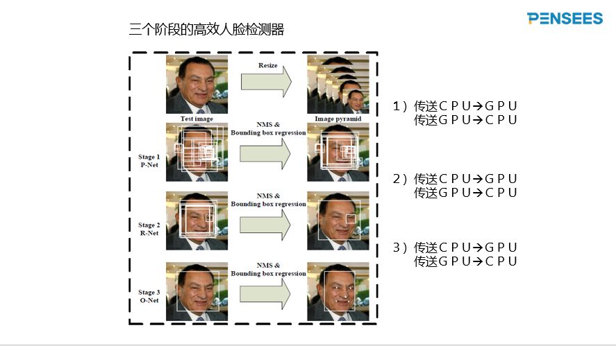 三个阶段的高效人脸检测器运行速度快,分类效果不错。然而,如果CPU跟GPU联合使用的话,CPU与GPU之间的传输数据时间不可忽略,如下图所示。