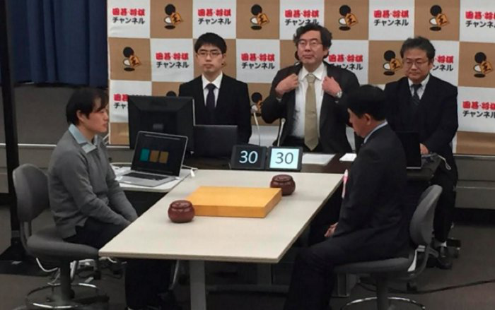 从零道一:能不能讲一讲你做这个围棋项目中遇到的困难、挑战,或者有没有哪些有意思的事情? 田:挑战和困难是非常多的,因为围棋涉及大规模的深度强化学习,需要大量的跨领域的知识组合。你不仅要知道强化学习怎么做,还需要搭分布式系统,保证训练能够进行,还需要调参。各种各样的东西都需要组合在一起,才能把系统的效果搞出来。所以这一点很锻炼人,它把本来并不交叉的领域放在了一起,这是一个非常好的项目。 从零道一:你会下围棋吗? 田:我会,但我的水平很差。我只要知道出了问题我怎么 debug 就行了。比如说围棋高手能够在某个问题出现之前就把问题看清,但对我来说,我可能要让机器先走个十步,我才能看出来。但这也没关系,因为机器一直在跑嘛,我完全可以让机器先跑。所以这个问题倒不大。围棋下得比较好的人可能还希望把自己的经验加到里面去,这其实对于 AI 的设计来说并不是有利的,因为我们希望 AI 能够自己学出来。 2016 UEC 计算机围棋大赛, DarkForest(左)与职业棋手小林光一九段(右)对弈。 从零道一:你刚才讲说做这个项目的时候需要跨领域的知识,当时你是怎么快速学到这些跨领域的知识,并且把这些知识投入到应用中的呢? 田:我觉得这个算是我的一个长处吧,很多东西我都能自己学会,只要我花时间花精力去做这件事。另外一个就是,我什么事情都愿意自己去尝试。因为深度强化学习是一个非常需要自己动手去尝试的领域。只有通过这种方式我才能知道什么东西是有效果的。这对我来说不是一个费力的事情。通过不停的实践,慢慢就可以知道怎么去做这个系统,然后很快地把效果提上去。