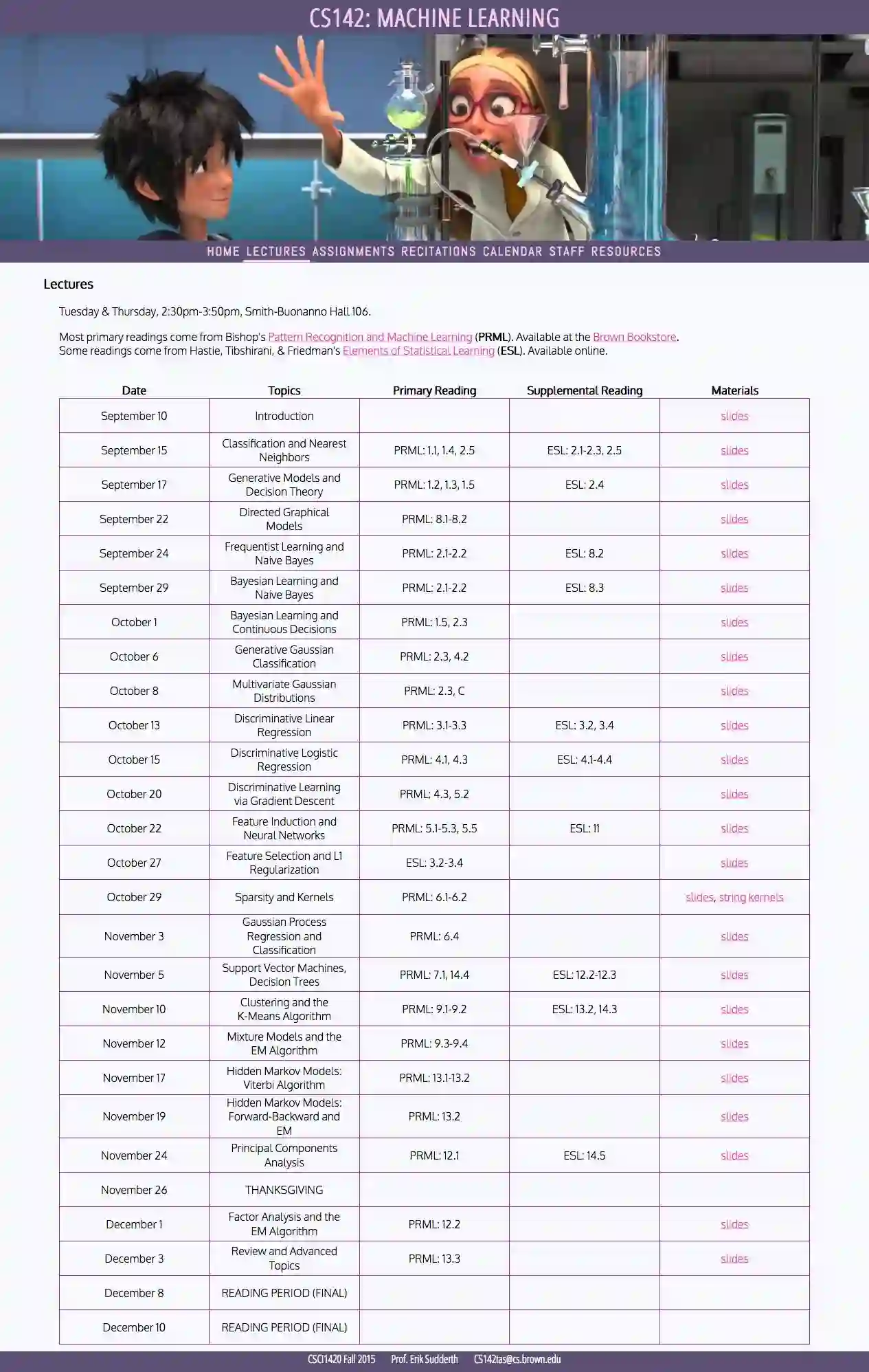 布朗大学 CSCI1420 《机器学习》 主要参考用书采用了PRML,内容安排也和PRML一致,共23课。