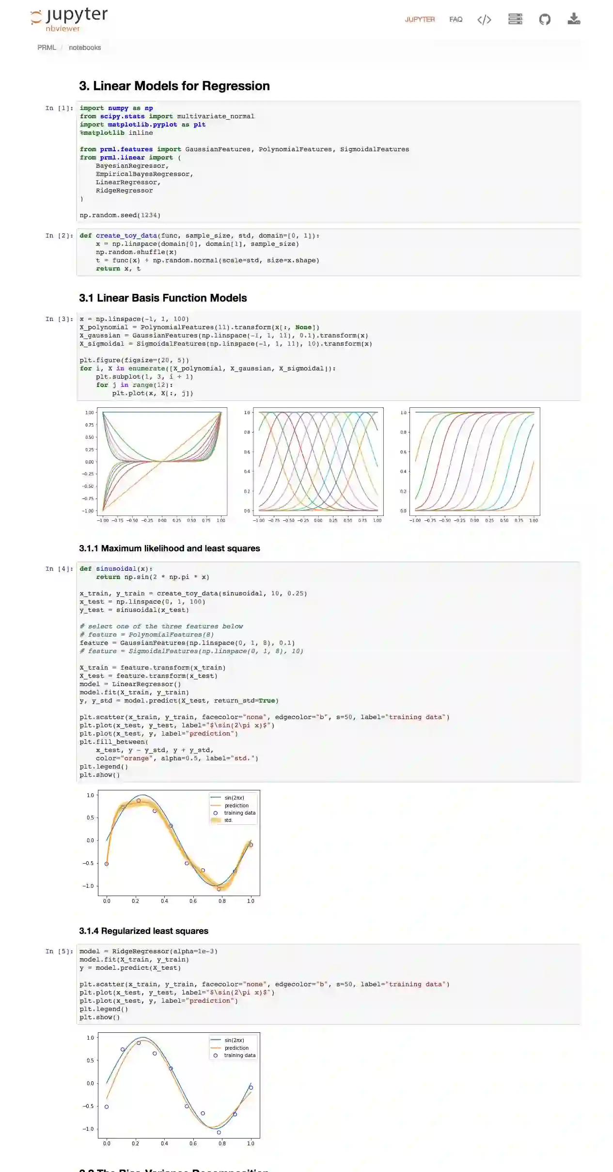 【导读】最近GitHub上网友ctgk公布了Python实现的经典机器学习图书《Pattern Recognition and Machine Learning》中的代码。在它之前曾有过Matlab版本,而新公布的版本采用机器学习领域最流行的python代码实现,比较符合大家的使用习惯。最重要的是代码以Jupyter notebook形式呈现,可视化结果非常适合边看书边调试代码。专知内容组特定整理PRML相关资料,供大家参考学习。