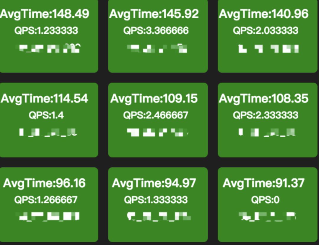 响应时间:大多数情况下,可以用一段时间内所有调用的平均耗时来反应请求的响应时间。但它只代表了请求的平均快慢情况,有时候我们更关心慢请求的数量。为此需要把响应时间划分为多个区间,比如0~10ms、10ms~50ms、50ms~100ms、100ms~500ms、500ms 以上这五个区间,其中 500ms 以上这个区间内的请求数就代表了慢请求量,正常情况下,这个区间内的请求数应该接近于 0;在出现问题时,这个区间内的请求数应该接近于 0;在出现问题时,这个区间内的请求数会大幅增加,可能平均耗时并不能反映出这一变化。除此之外,还可以从P90、P95、P99、P999 角度来监控请求的响应时间在 500ms 以内,它代表了请求的服务质量,即 SLA。