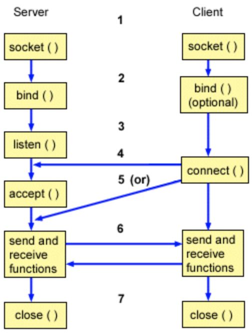 数据传输:当 ClientSocket 和 ServerSocket 建立连接后,ClientSocket 调用 send() 函数,ServerSocket 调用 receive() 函数,ServerSocket 处理完请求后,调用 send() 函数,ClientSocket 调用 receive() 函数,就可以得到返回结果。