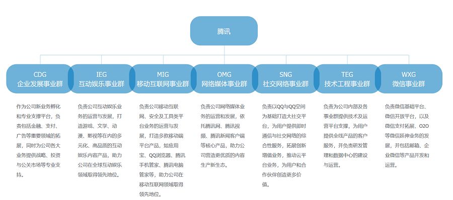 很明显的,这样的架构让腾讯内部形成了双重分工系统,横向是业务分工,纵向是决策分工。而系统-部-组的三层体系,让整个内部管理更为扁平化,决策效率有了极大的提高,且各部门根据市场环境发展的反应调整也更为轻便。