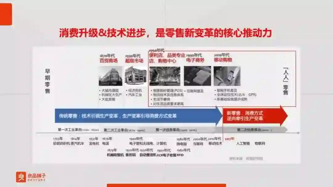 其中有两个核心,第一是消费者,第二是技术,在零售业整个发展进程中,消费者需求升级和技术进步都是产生变革的核心推动力。