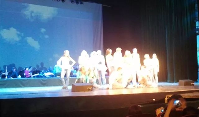其次,最好不要拍太暗的东西,也不要拍太亮的东西。这张图就是我2013年5月13日,在西安易俗大剧院观看杨百翰大学青年大使歌舞团表演时照的,台上很亮台下很暗,结果就看到一群发光的人。