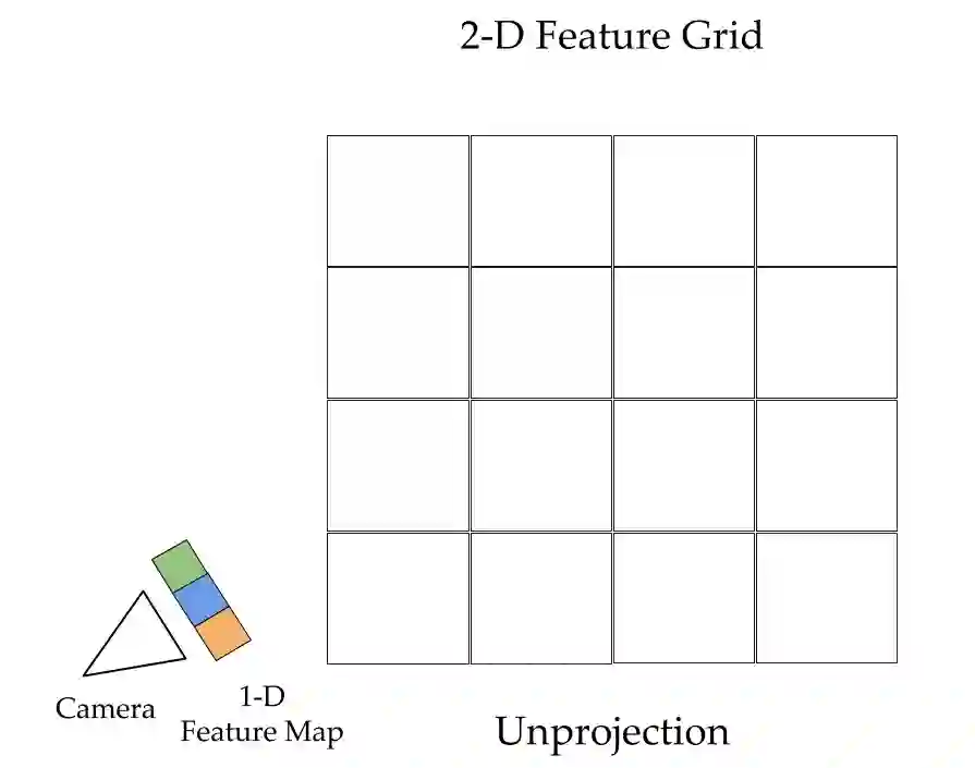 这里的关键要素是投影和反投影模块,它们允许 LSM 在 2D 图像和 3D 空间中能够正确互相转换。反投影模块将 2D 图像中的特征(由前馈卷积神经网络获取)投影到 3D 网格中,并使得多张此类图片获得的结果根据极线约束(epipolar constraint)在 3D 网格中对齐。这种方式简化了特征匹配,现在沿极线(epipolar line)搜索消耗的计算资源要比在 3D 网格中搜索所有映射到给定地址的特征来得要少。
