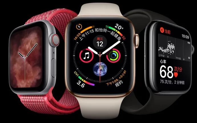 2018年:Apple Watch Series 4 标志着跌倒检测和 ECG 应用这两个主要的健康和安全功能的到来。另外苹果还增加了表壳的尺寸,缩小了屏幕周围的边框,从而提供了更大的 40mm 和 44mm 选项。借助 64 位的 S4 芯片,其性能提高了两倍。