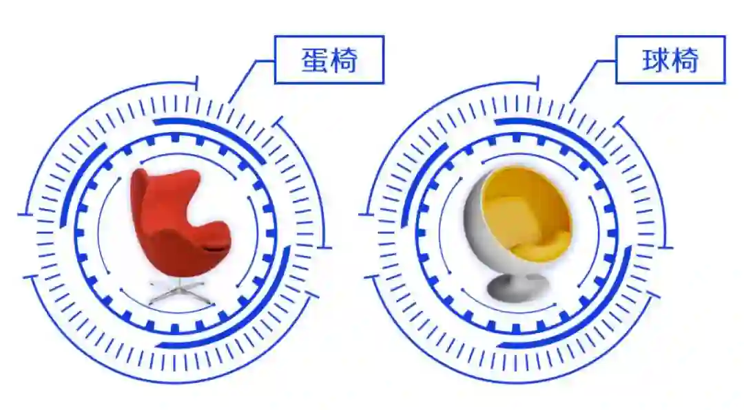 与此同时,不同商品的相似特征,也为机器识别增加了一定的难度:比如家具中的球椅和蛋椅,从某些特定角度来看十分相似;再比如服饰的宝蓝色和松绿色,在不同的光线条件下也存在一定的相似性。