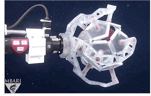 这种机器人是旋转驱动的十二面体,包括了五个由3D打印制造的“花瓣”,这些花瓣可以由其后方设置的一个点上所施加的作用力,以一种均匀无损的方式完成闭合。由于机器人的工作环境为海底的极端高压环境种,因此该款机器人密封性好的特点显得尤为重要。在测试过程中,研究者在一个水池中成功捕获了一些水母和章鱼等深海生物,并在没有造成伤害的条件下再次释放了它们。在未来,研究者希望在机器人上搭载包括相机在内的多种传感器,以搜集动物的体貌特征以及基因等信息,并通过修改设计将这一种机器人应用在太空或地底的探测任务中,成为相关领域科学研究中的一大助力。