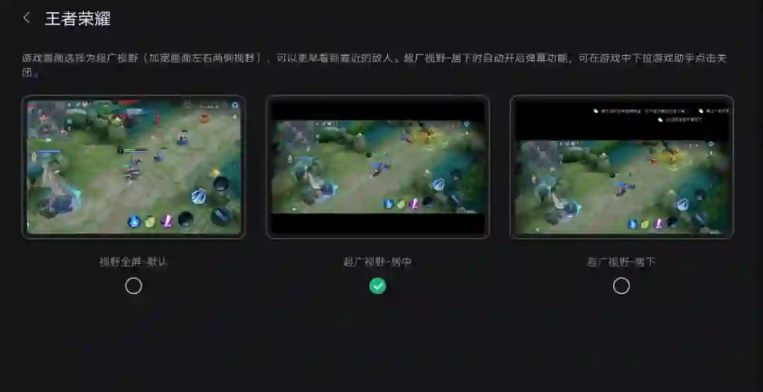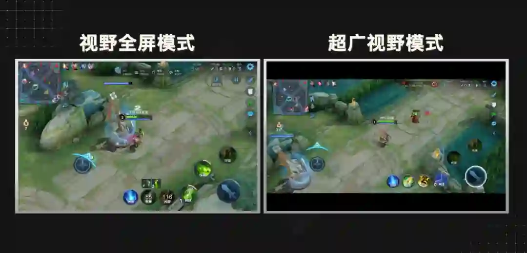 它通过改变游戏的画⾯显示比例,为玩家提供更大的游戏视野,这在玩 MOBA 类游戏时,能够给玩家带来相当大的优势,目前这个功能已经支持了《王者荣耀》和《英雄联盟》两款主流 MOBA 游戏。