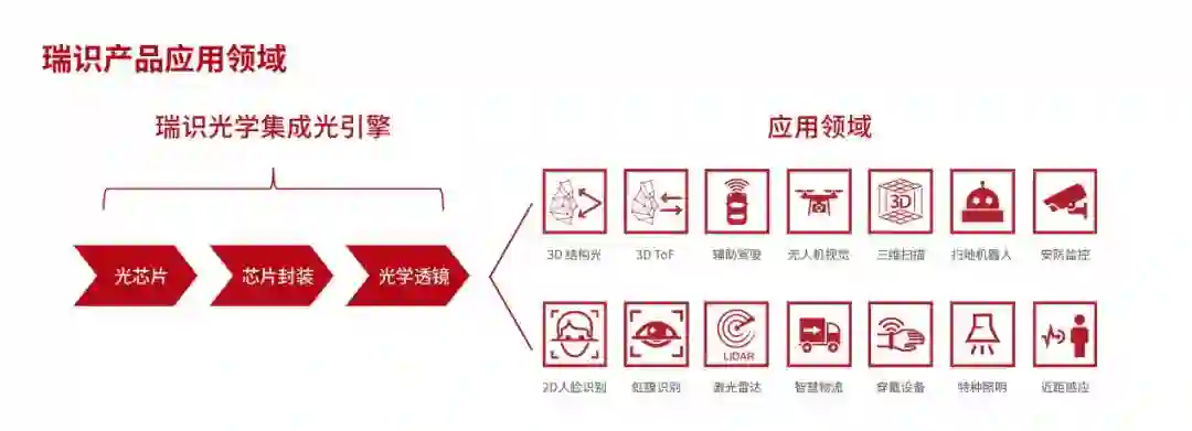 目前,瑞识科技的光学集成光引擎方案已经成功应用在3D人脸支付、人脸门禁门锁、红外补光、机器人视觉、激光雷达等领域。同时,瑞识还与合作伙伴一起,共同合作开发完整的光传感解决方案,赋能更多的新兴应用领域。