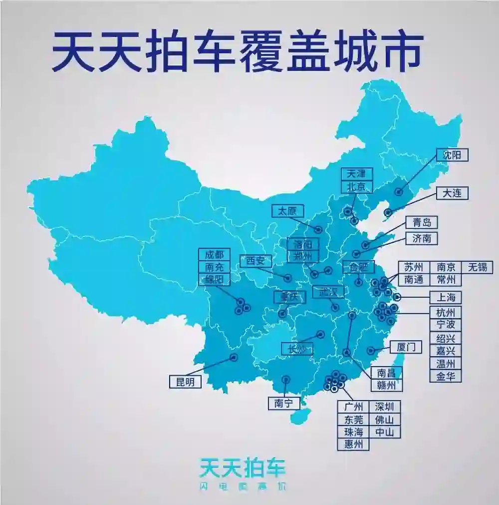 * 天天拍车目前覆盖国内超过40个城市