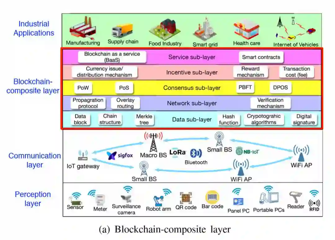 《Blockchain for Internet of Things: A Survey》调查研究了区块链技术与物联网的整合。文中将区块链和物联网的这种结合命名为物联网链接(BCoT)。作者对BCoT进行了深入的调查,并讨论了对这种新范式的见解,提出BCoT架构的建议。文中进一步讨论了在物联网中使用5G区块链以及BCoT的工业应用的问题。