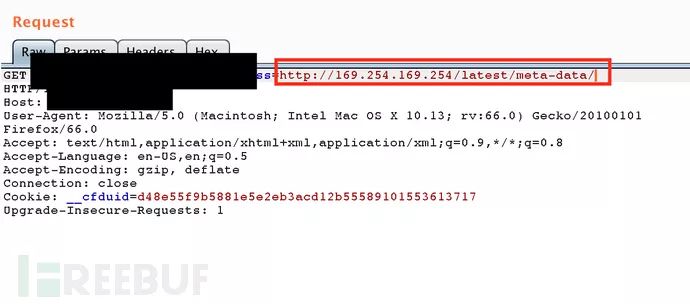 这样来看,我已经可以绕过缓存服务来实现SSRF攻击了,那么,按照AWS的实例元数据机制,我们来看看它能不能读取后端应用服务器中的AWS密码凭据。为此,我们让后端应用服务器发起针对以下AWS实例的请求: