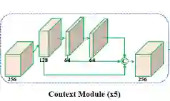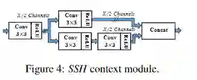 使用类似SSH模块的Context Module(下图来自Retinaface,也是后面讲的SSH模块),增加感受野以及增强语义建模能力。