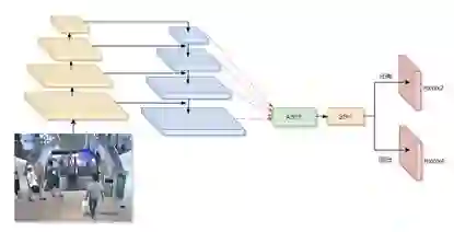 分类分支定位人脸中心点,并对人脸进行分类(mask和nomask),损失函数采用Focal loss;回归分支回归人脸中心点到边框的距离(left,top,right,bottom),损失函数采用Giou loss;优化器使用Adam,采用Step学习率。测试时使用Softnms,使用MaxPooling速度快点,但精度会差一点。(最后800x640的输入F1-score是0.76,速度大概是十几帧,由于C++测速bug,这个模型只训练一次就没有优化,最后降低输入分辨率到576x384, 将速度提到32 FPS,F1-score是0.69,因此除上述提到的外未使用其他训练trick,模型精度应该还可以提升)。
