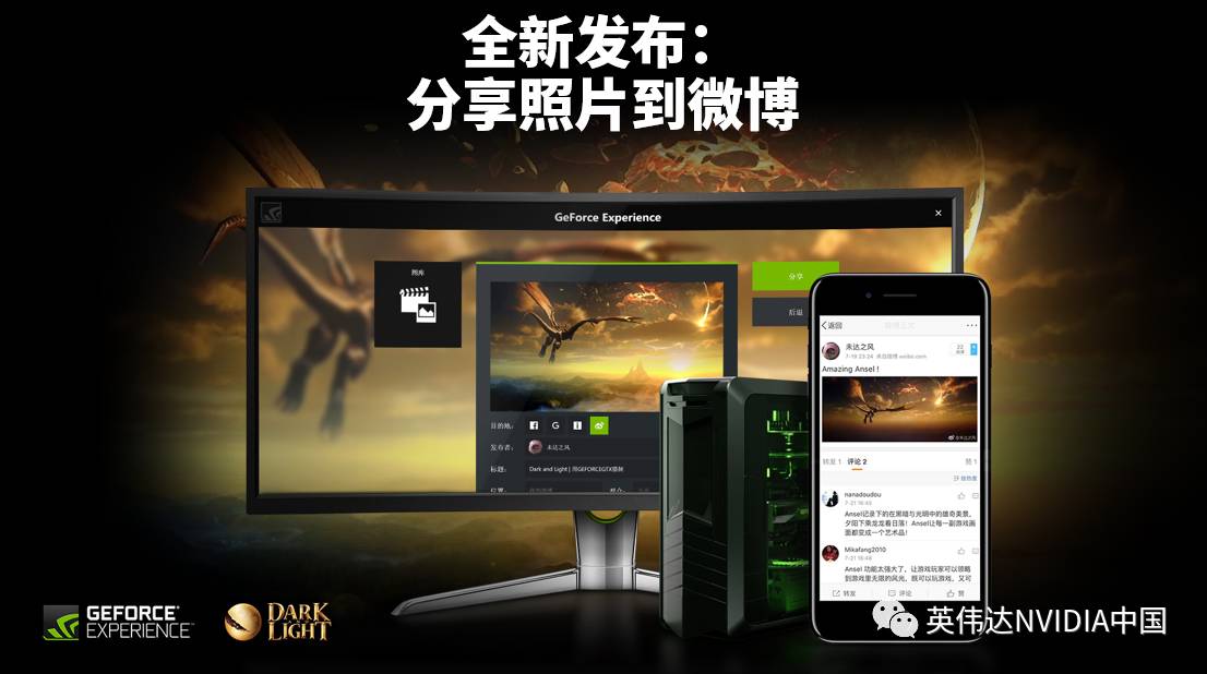 在7月27日的ChinaJoy 2017上,NVIDIA发布了全新的GeForce Experience版。它优化了多款中国顶级游戏,可提供分享游戏截图到微博的功能,并为多款即将上线的游戏提供 “ShadowPlay” 游戏视频录制功能支持。