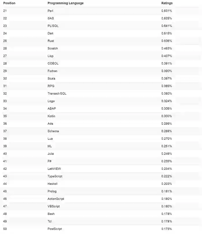 这个排行榜可以用来考查你的编程技能是否与时俱进,也可以在开发新系统时作为一个语言选择依据。