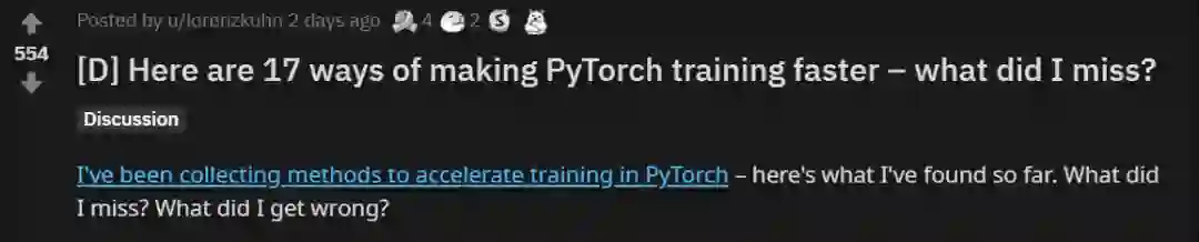 近日,Reddit 上一个帖子热度爆表。主题内容是关于怎样加速 PyTorch 训练。原文作者是来自苏黎世联邦理工学院的计算机科学硕士生 LORENZ KUHN,文章向我们介绍了在