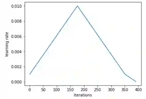 学习率 schedule 的选择对模型的收敛速度和泛化能力有很大的影响。Leslie N. Smith 等人在论文《Cyclical Learning Rates for Training Neural Networks》、《Super-Convergence: Very Fast Training of Neural Networks Using Large Learning Rates 》中提出了周期性(Cyclical)学习率以及 1Cycle 学习率 schedule。之后,fast.ai 的 Jeremy Howard 和 Sylvain Gugger 对其进行了推广。下图是 1Cycle 学习率 schedule 的图示: