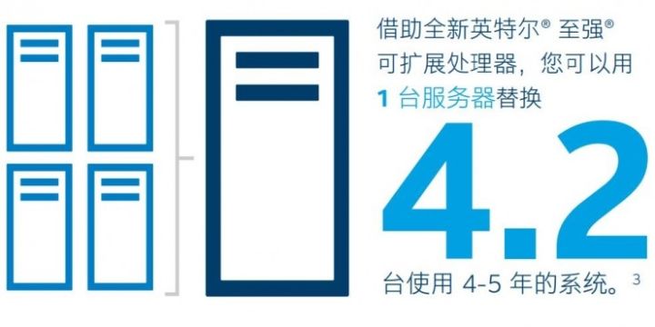 此外,至强可扩展处理器家族在虚拟化功能方面也实 现了显著的性能提升,从而有效改进混合云的敏捷性和效率。基于英特尔最新处理器的服务器支持企业显著增加每台服务器上运 行的虚拟机(VM)数量。相比于使用 4-5 年的系统,至强可扩展处理器将每台服务器运行的虚拟机数量增加了 4.2 倍,企业可因此运行更多的工作负载和应用,进而支持其不断增长的混合云战略。