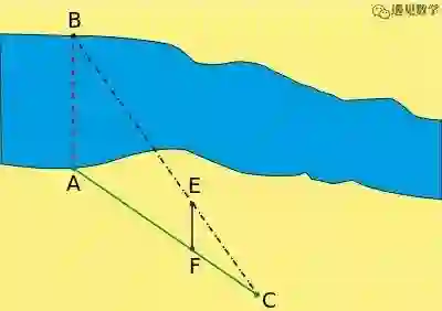 截距定理可用于确定不能直接测量的距离,例如河流或湖泊的宽度,高层建筑物的高度或类似物。右图显示了测量河流的宽度。如图所示 |CF|, |CA|, |FE| 都可以计算出距离, 这样就可以计算出河流宽度
