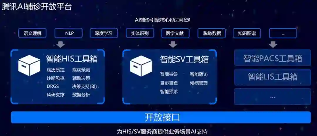官方介绍,腾讯觅影AI辅诊引擎经过大量学习和训练,能够预测700多种疾病,覆盖医院全学科门诊90%的高频诊断。通过开放接口,医疗信息化厂商可以将腾讯觅影AI辅诊引擎与医院的HIS系统融合,让医院HIS系统具备AI辅诊能力。