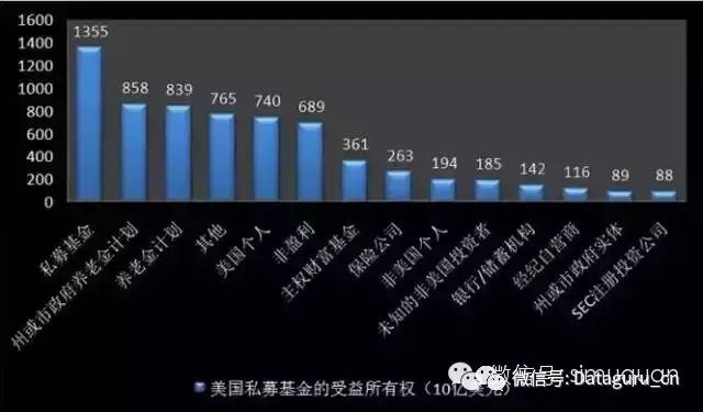 总体来说,美国私募基金的出资人主体是各种类型机构投资者(包括养老基金、FOF、主权财富基金、非营利组织、保险公司、银行等),个人投资者仅占13.9%的基金份额。