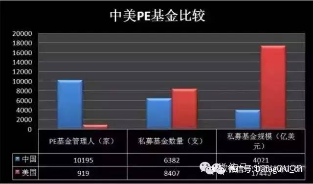 2014年,美国GDP为161970亿美元,中国GDP为103850亿美元。美国GDP为中国的1.56倍。而美国私募基金行业管理资产规模竟超过中国10倍,中国与美国之间的差距还相当大。