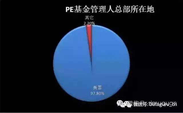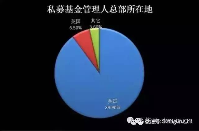 美国89.9%(按照净资产计算)的私募基金管理人的总部位于美国,其次为英国占到6.5%。