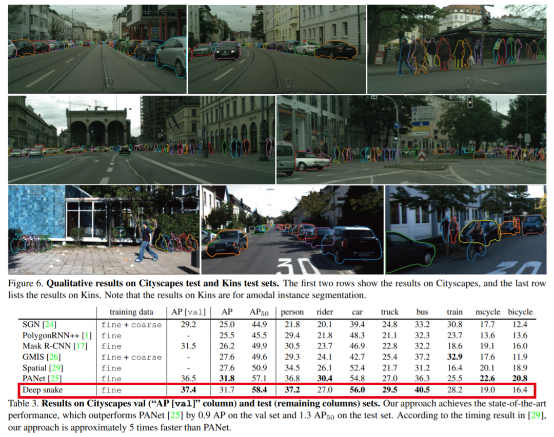 注:Deep Snake在1080Ti上的512×512图像的分割速度可达32.3 FPS!性能优于Mask R-CNN、PANet和PolygonRNN++等